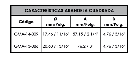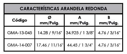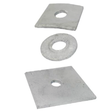 Las arandelas son utilizadas para brindar un mayor contacto, o bien mantener el aprete, de los ensambles de las estructuras. Son requeridas en las estructuras de soporte de líneas de energía eléctrica, según el diámetro del perno el tamaño de la arandela podrá variar.